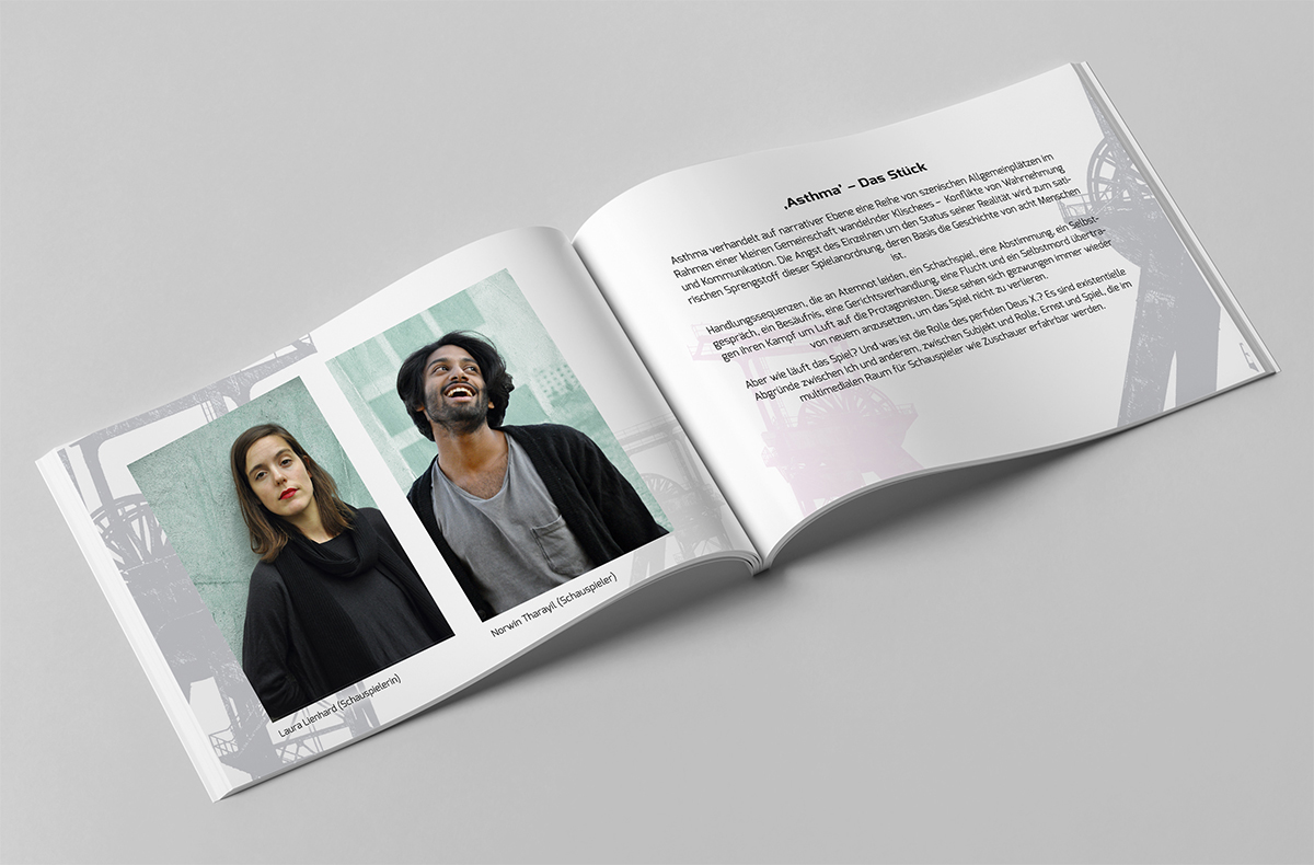 Programmheft zur Theateraufführung "Asthma-Brav in die neue Welt" der Basler Theatergruppe KREIDEKOMMAKOHLE (2014) Seite 8 + Seite 9