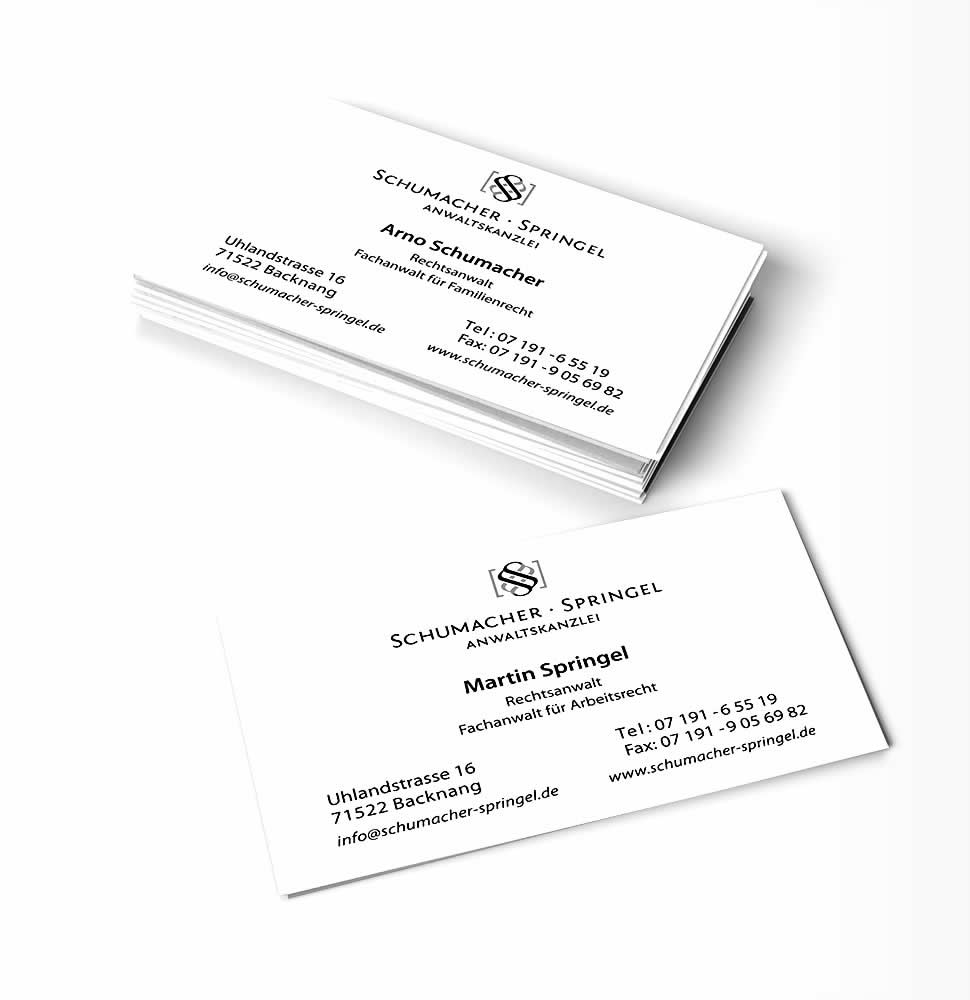Visitenkarte für die Anwaltskanzlei Schumacher + Springel