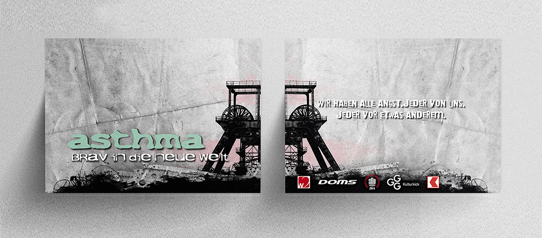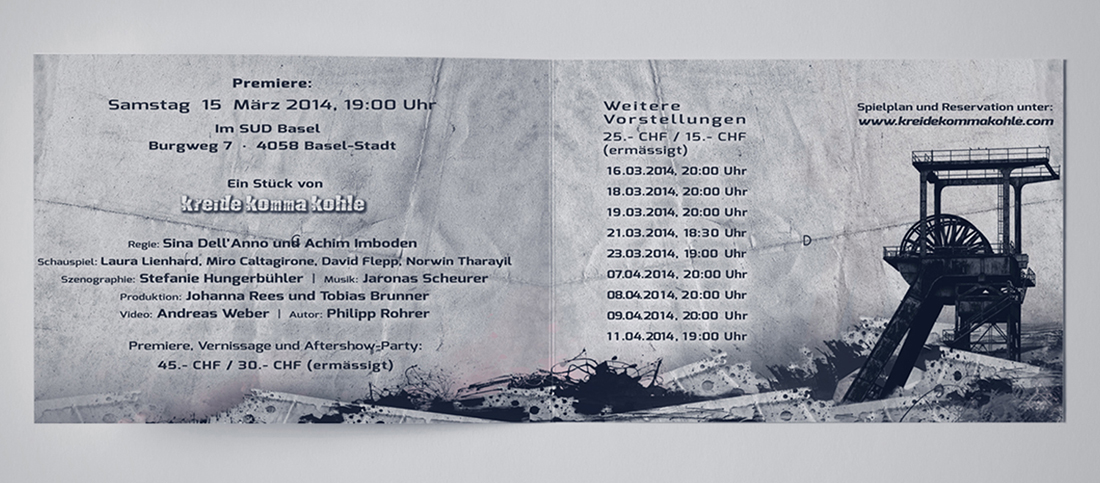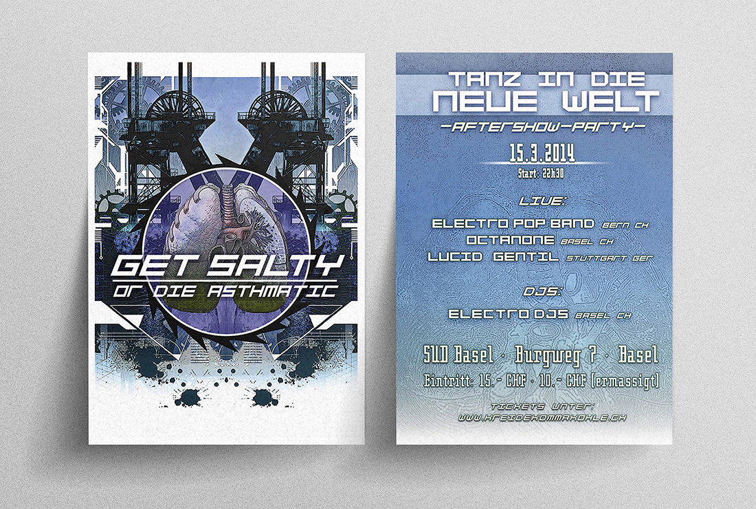Flyer für die After-Party zur Premiere des Theaterstücks ASTHMAder Basler Theatergruppe KREIDE KOMMA KOHLE 2014