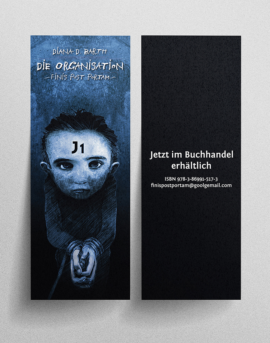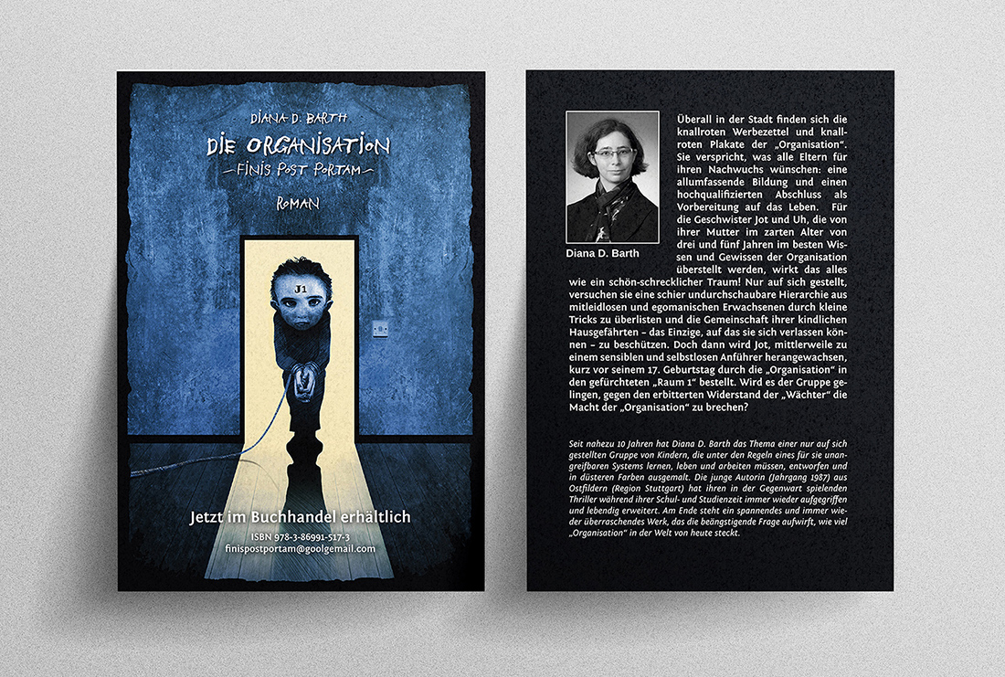 Flyer + Lesezeichen zur Veröffentlichung des Romans "Die Organisation" von Diana Barth2013