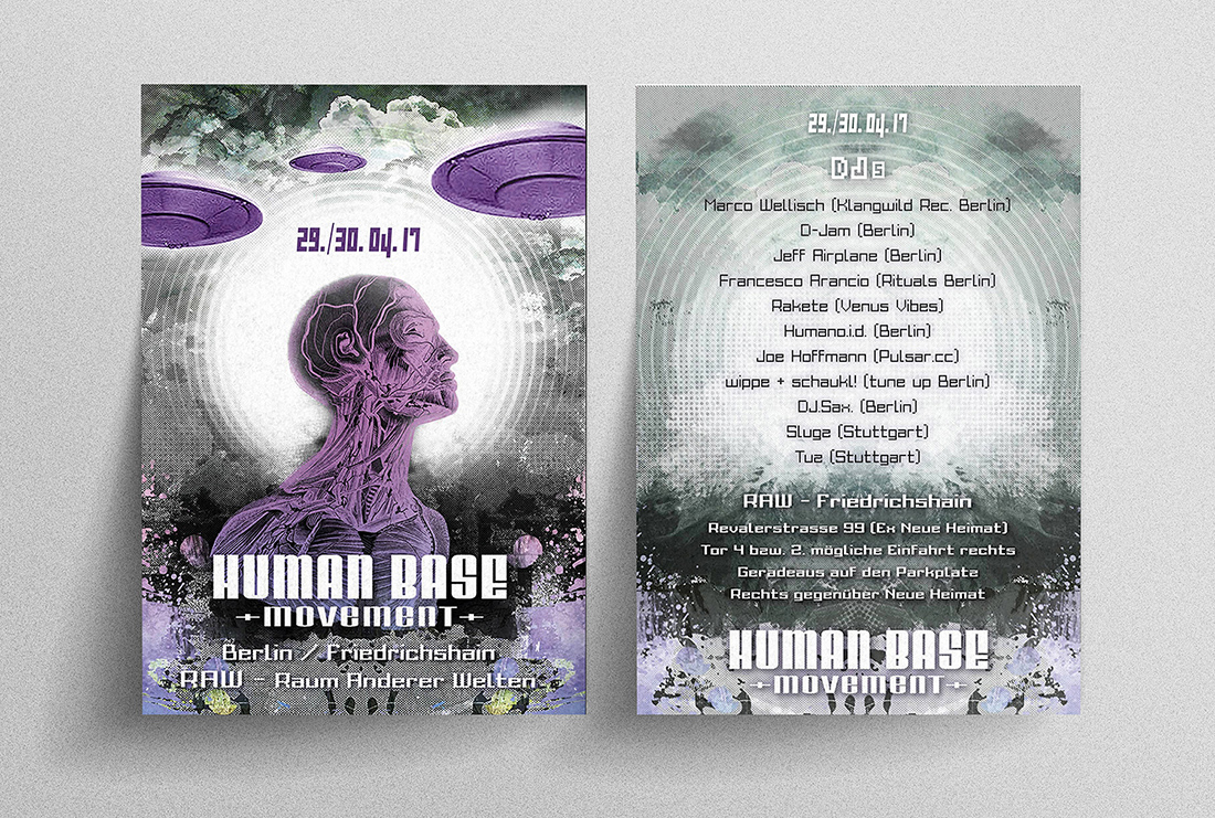 Flyer im A5-Format für eine Berliner Techno-Veranstaltung 2017