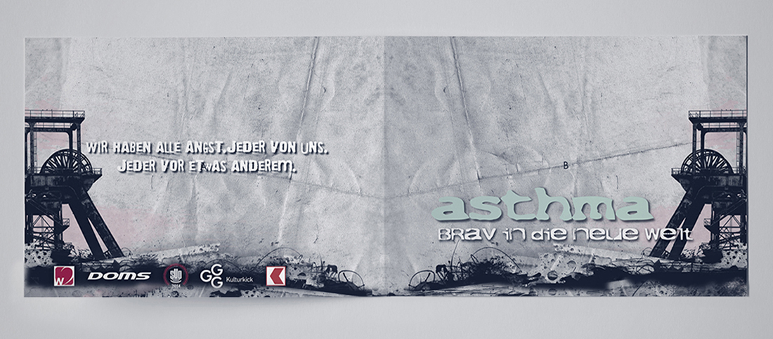 Flyer zur Premiere von "ASTHMA-BRAV IN DIE NEUE WELT" der Basler Theatergruppe KREIDE KOMMA KOHLE