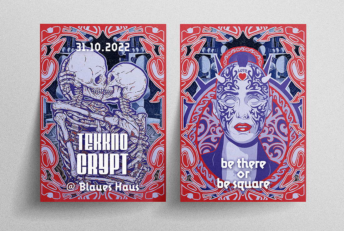 Flyer zur Veranstaltung "Techno Crypt" Halloween 2022 @ Blaues Haus