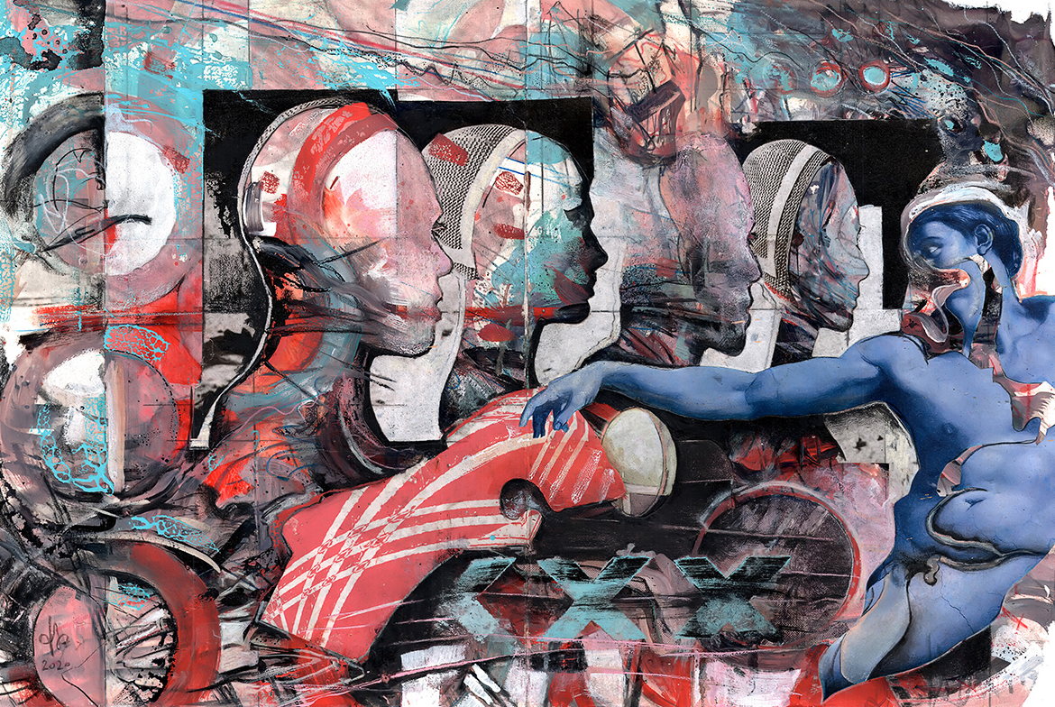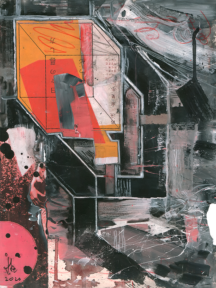 Collage, Gouache, Tusche, Polychromos-Stifte35,4 x 25,4 cm