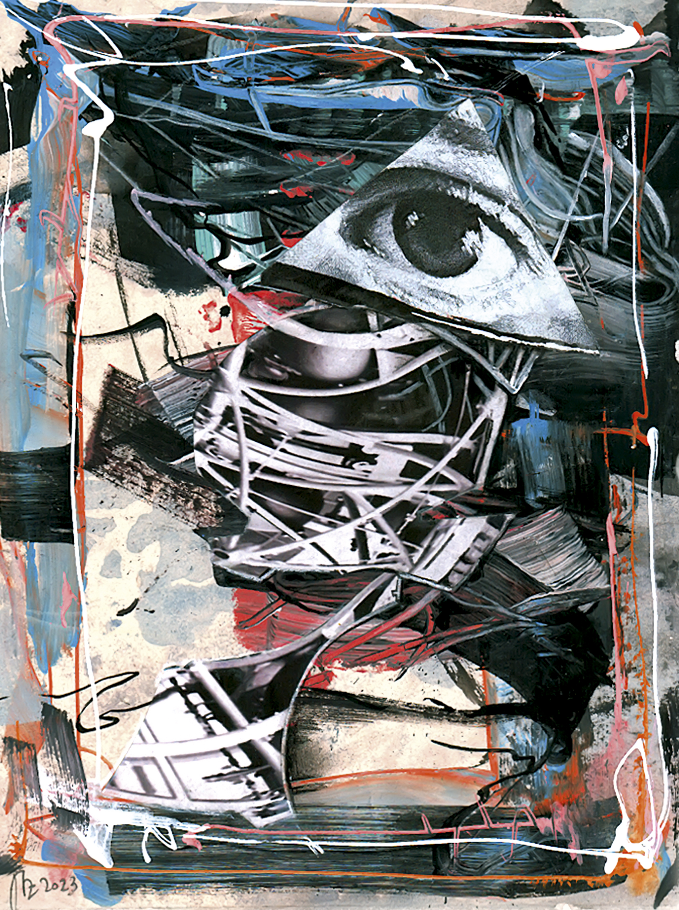 Collage, Gouache, Tusche, Polychromos-Stifte31,5 x24 cm