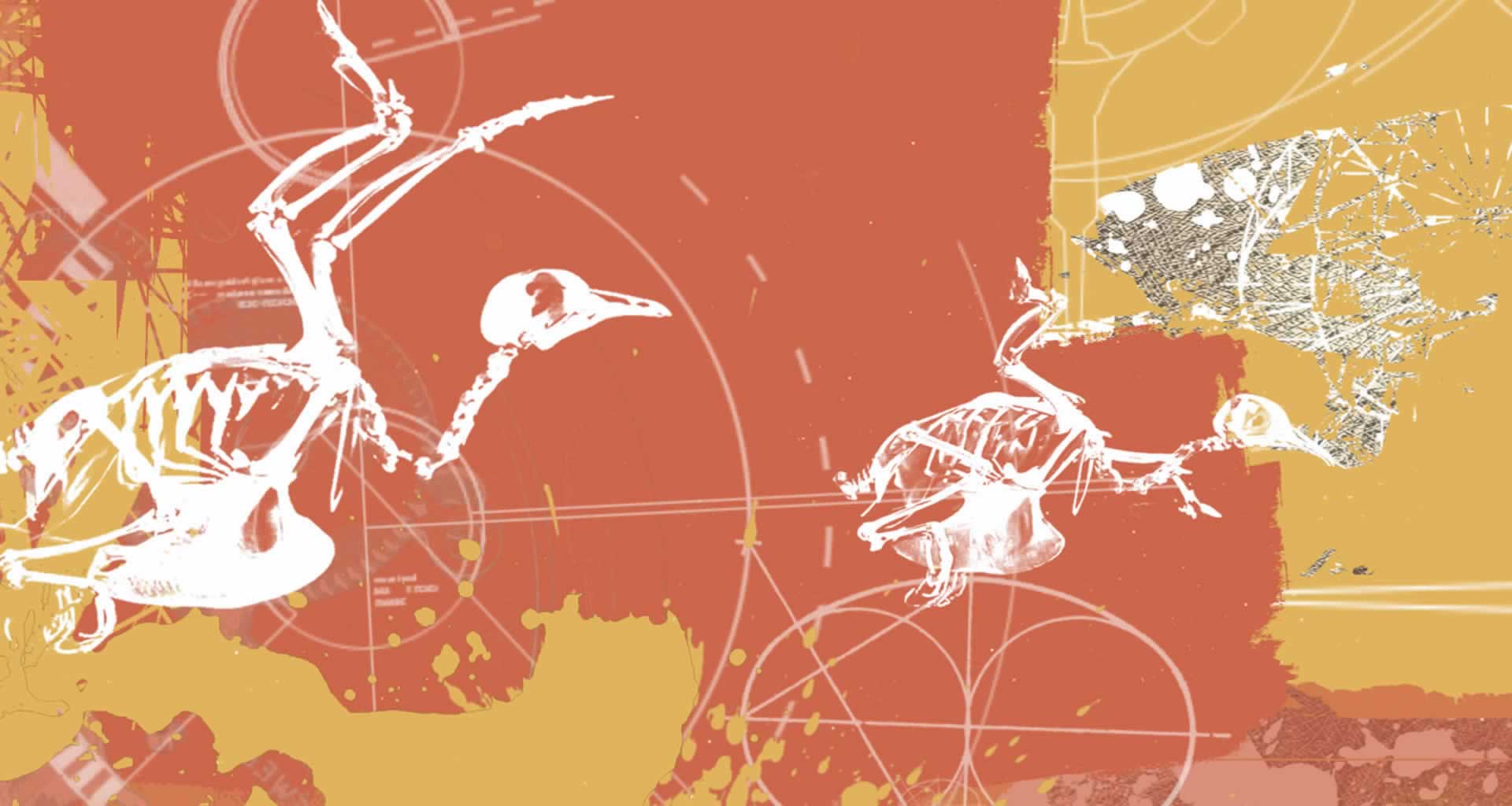 Bildelemente, die assoziativ mit Tod und Sterben verknüpft werden können sind allgegenwärtig. Schädel, Skelette, Bilder aus alten Anatomiebüchern, Gasmasken, Käfer - in den Bildern wird der neue Mensch regelrecht bedrängt von den Symbolen des Todes. Fast scheint es , als ob die Leugnung der Wirklichkeit und Notwendigkeit des Todes durch Homo Deus, diese Präsenz erst verursacht. Als ob der Tod auf den Bildern jene anmaßend-unverschämten Spezies, die in ihrer Hybris glaubte, ihn überwinden und überlisten zu können, belauert und belagert. Sich bisweilen tarnend und sein Ziel in harmloser Gestalt umflatternd, wartet er offensichtlich nur auf einen Moment der Schwäche und Unachtsamkeit...