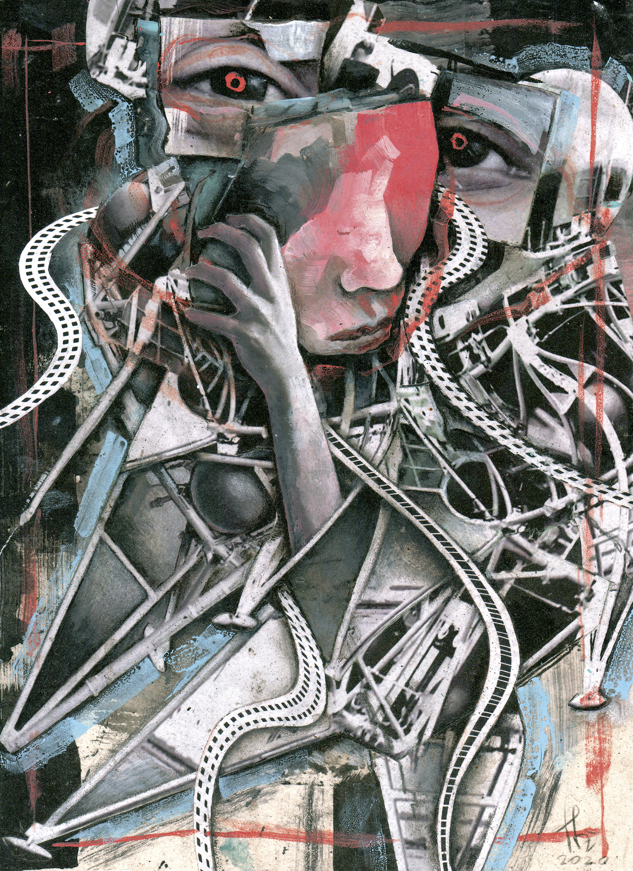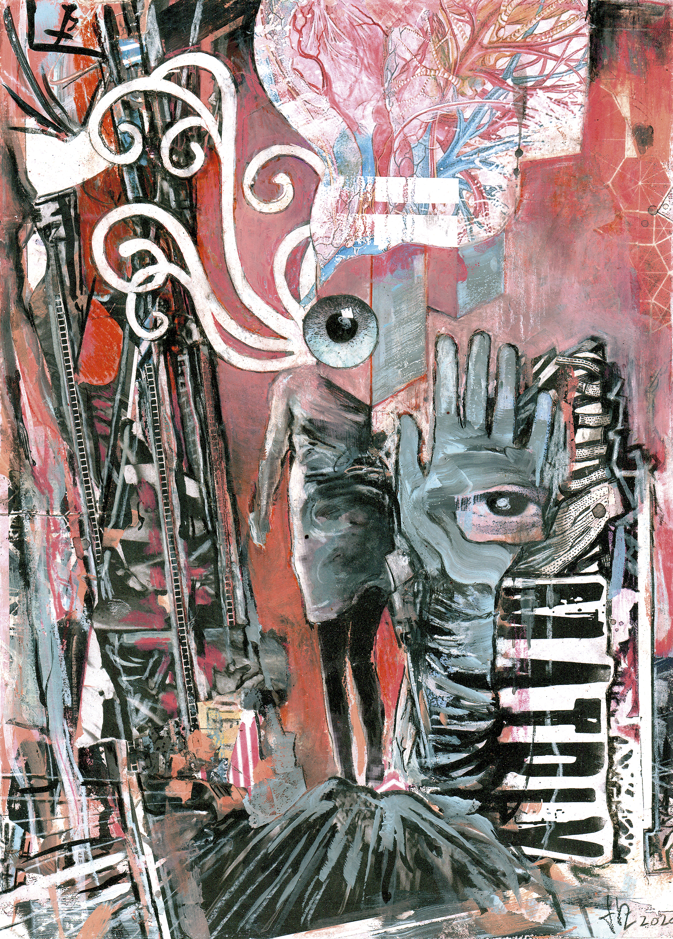 Collage, Gouache, Tusche, Polychromos-Stifte35,4 x 25,4 cm